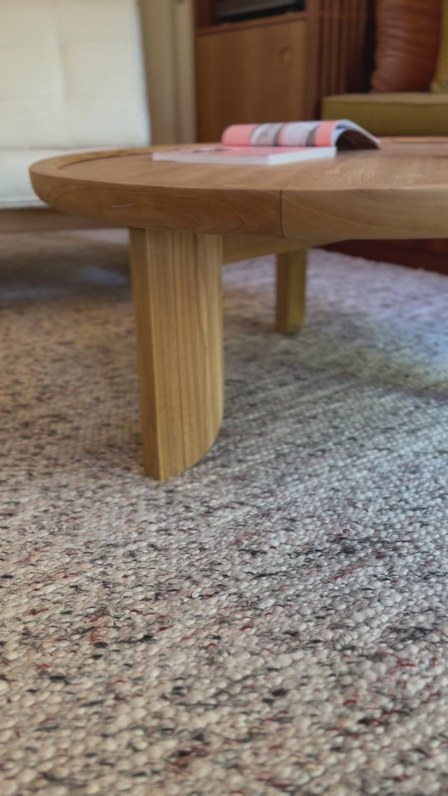 Made from high-quality solid teak wood, renowned for its rich grain and exceptional durability, this coffee table exudes natural beauty and sophistication. Its round silhouette adds a touch of softness to any living space, while its minimalist design ensures a seamless integration into modern interiors.